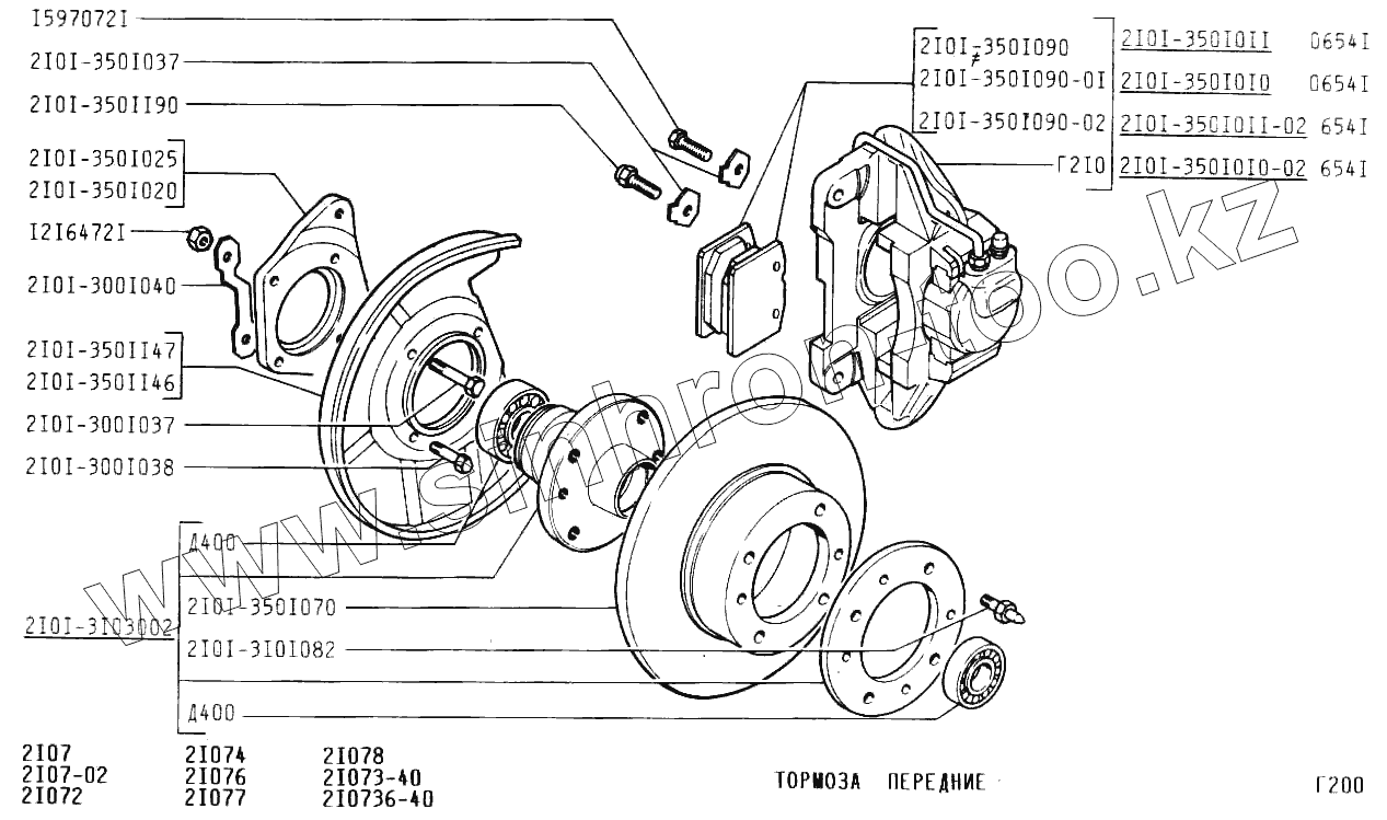 Каталог запасных частей к технике: ВАЗ-2107. Тормоза передние