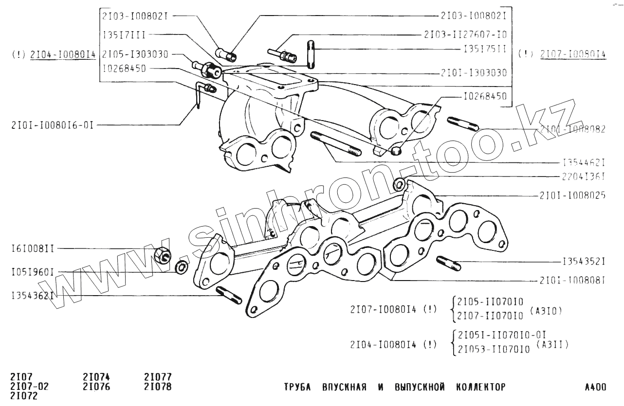 Каталог запасных частей к технике: ВАЗ-2107. Труба впускная и выпускной коллектор