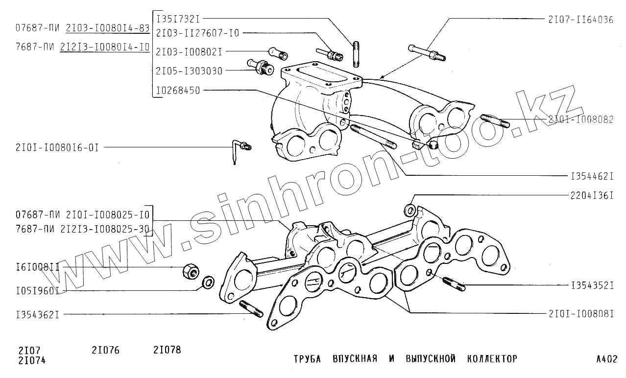 Каталог запасных частей к технике: ВАЗ-2107. Труба впускная и выпускной коллектор