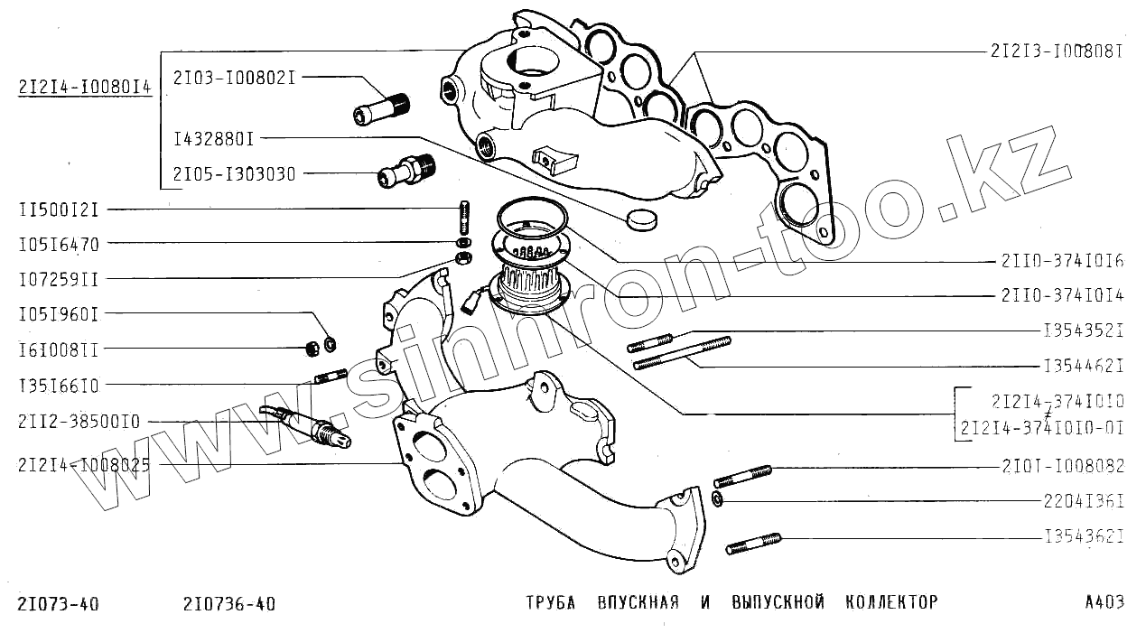 Каталог запасных частей к технике: ВАЗ-2107. Труба впускная и выпускной коллектор