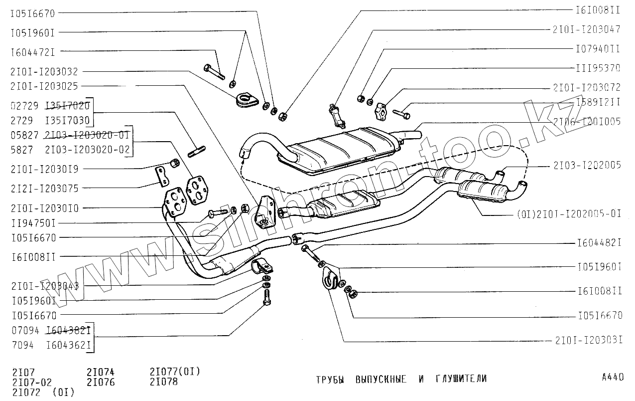 Каталог запасных частей к технике: ВАЗ-2107. Трубы выпускные и глушители