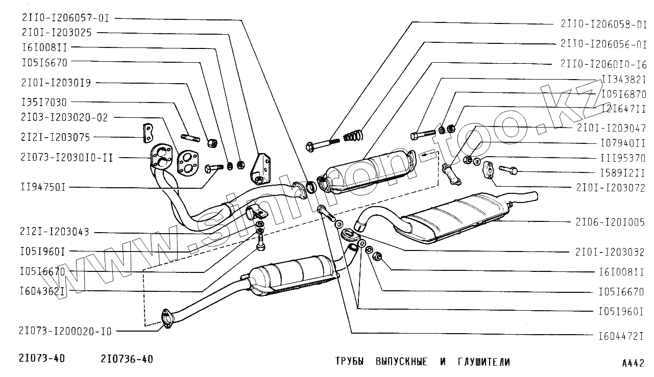 Каталог запасных частей к технике: ВАЗ-2107. Трубы выпускные и глушители