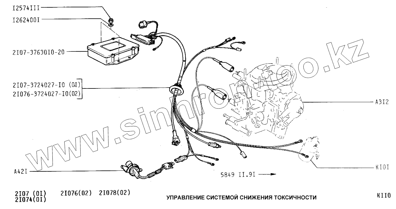 Каталог запасных частей к технике: ВАЗ-2107. Управление системой снижения токсичности