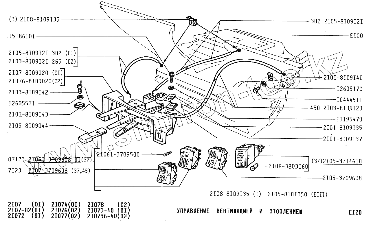 Каталог запасных частей к технике: ВАЗ-2107. Управлением вентиляцией и отоплением