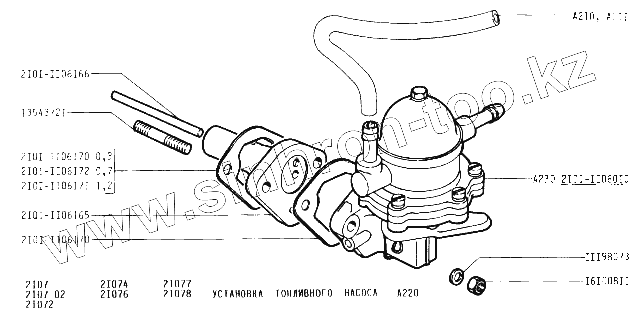 Каталог запасных частей к технике: ВАЗ-2107. Установка топливного насоса