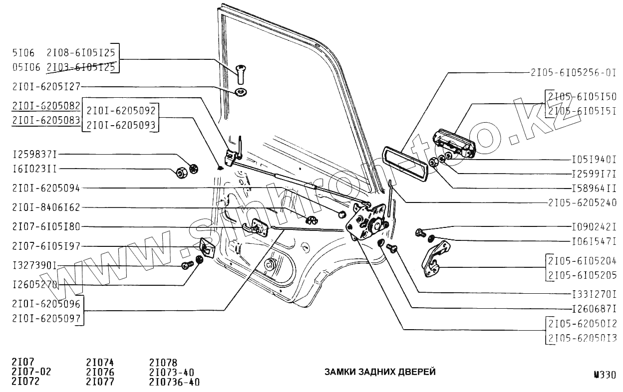 Каталог запасных частей к технике: ВАЗ-2107. Замки задних дверей