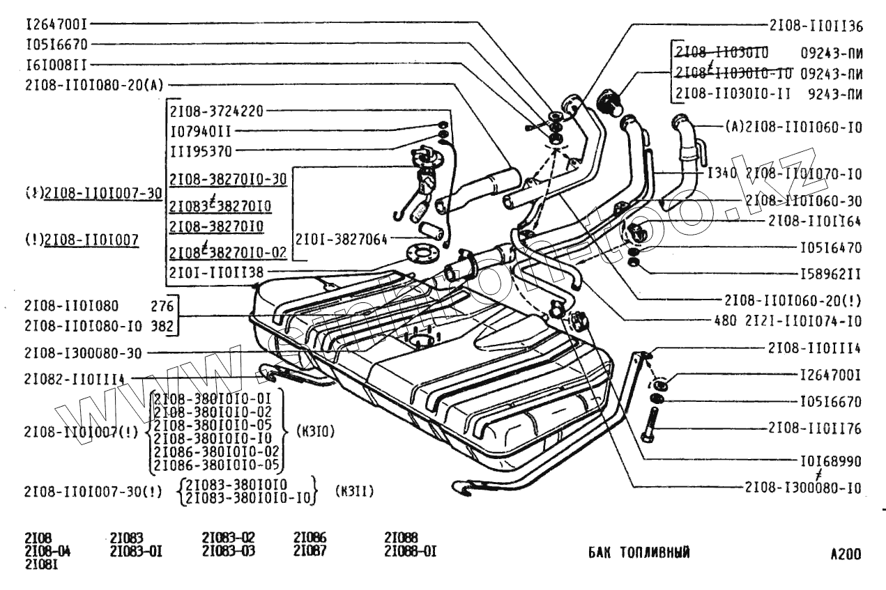 Каталог запасных частей к технике: ВАЗ-2108. Бак топливный