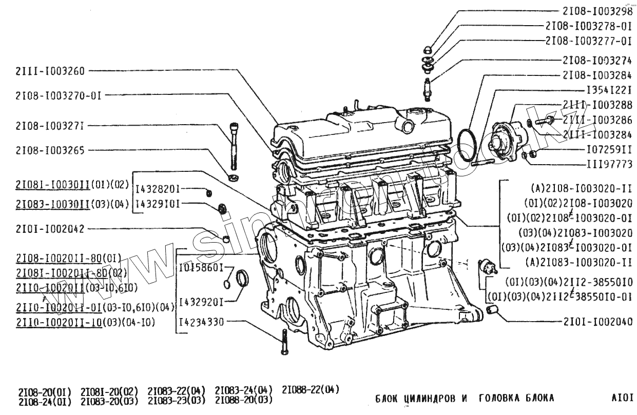 Каталог запасных частей к технике: ВАЗ-2108. Блок цилиндров и головка блока
