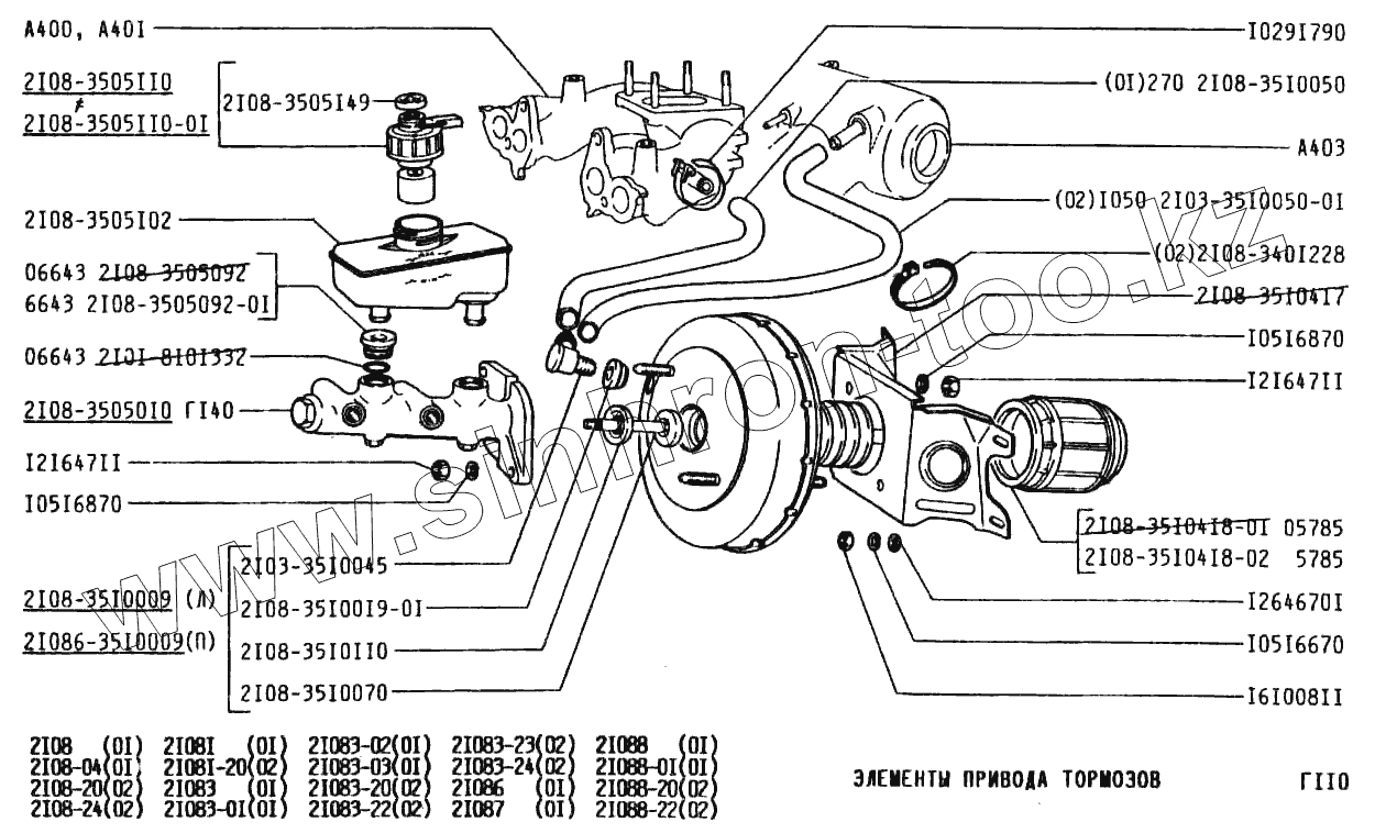 Каталог запасных частей к технике: ВАЗ-2108. Элементы привода тормозов