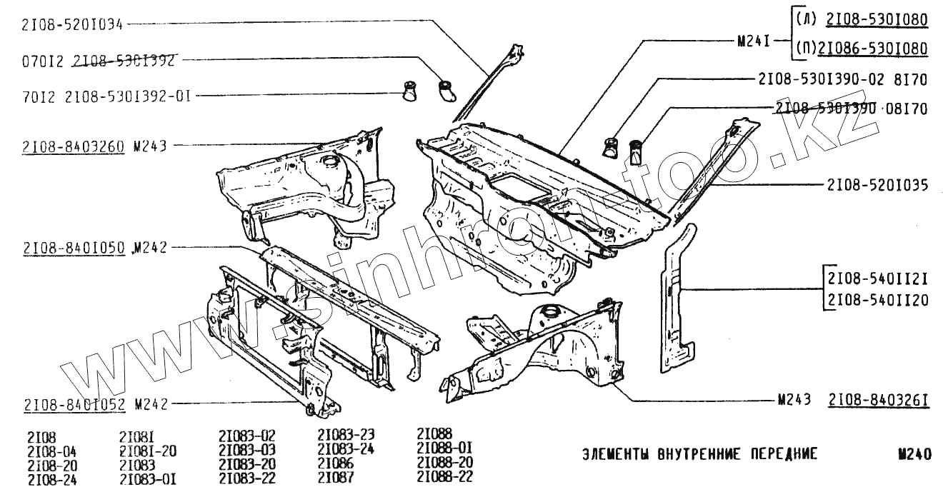 Каталог запасных частей к технике: ВАЗ-2108. Элементы внутренние передние