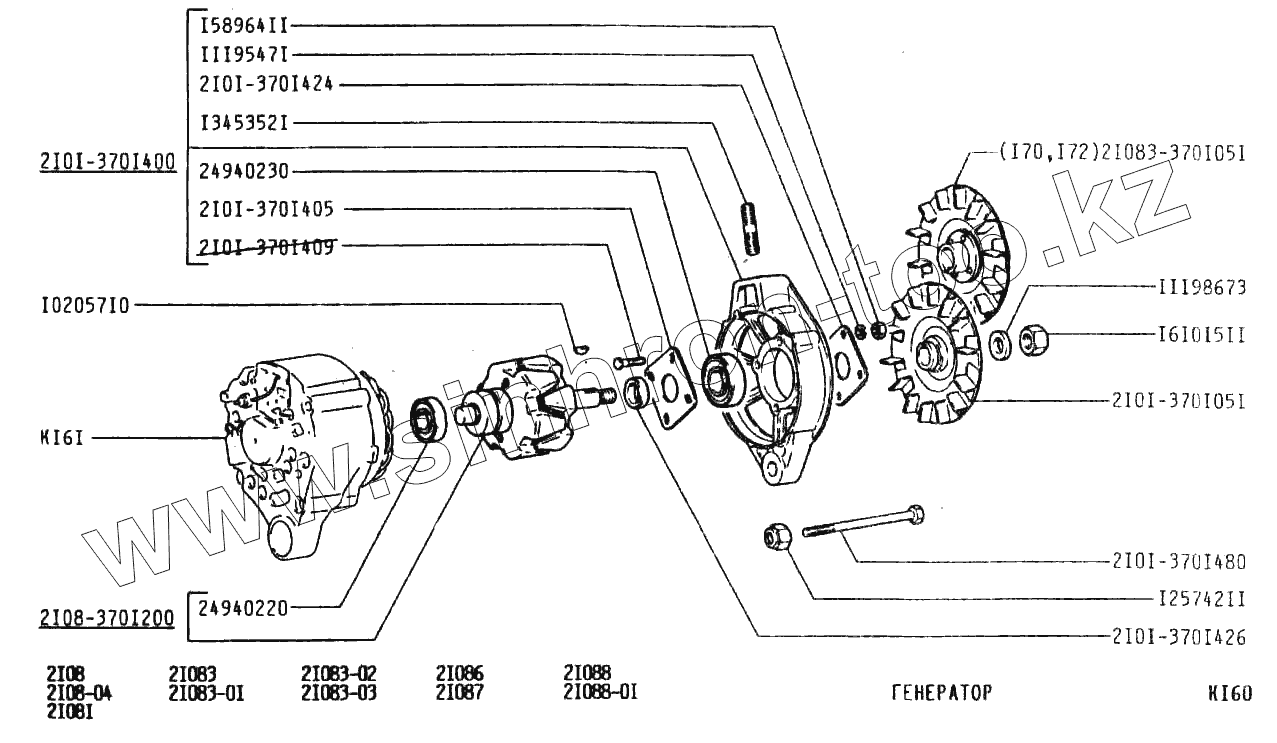 Каталог запасных частей к технике: ВАЗ-2108. Генератор