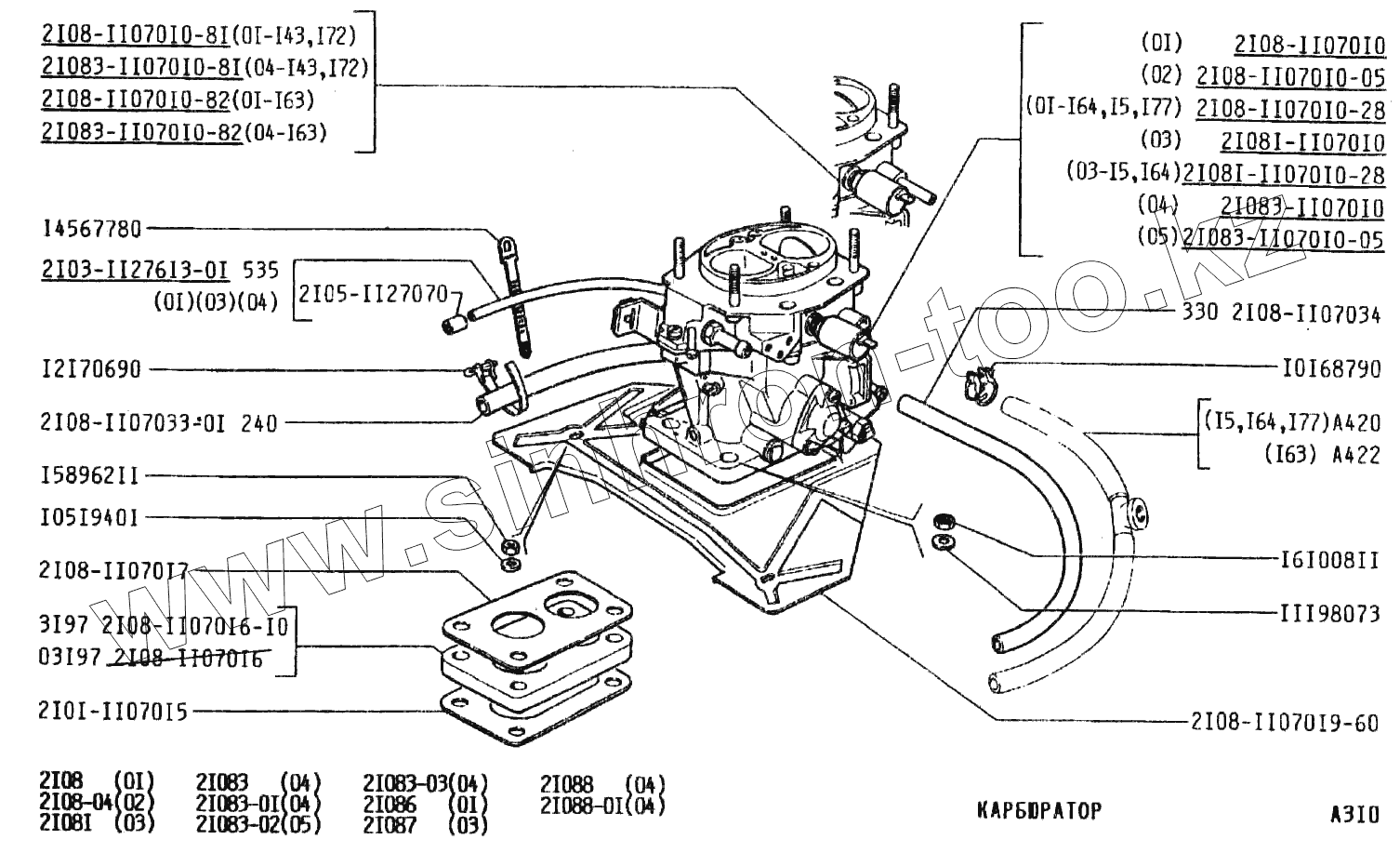 Каталог запасных частей к технике: ВАЗ-2108. Карбюратор