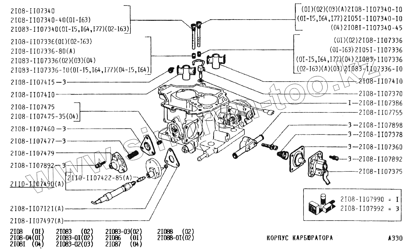 Каталог запасных частей к технике: ВАЗ-2108. Корпус карбюратора