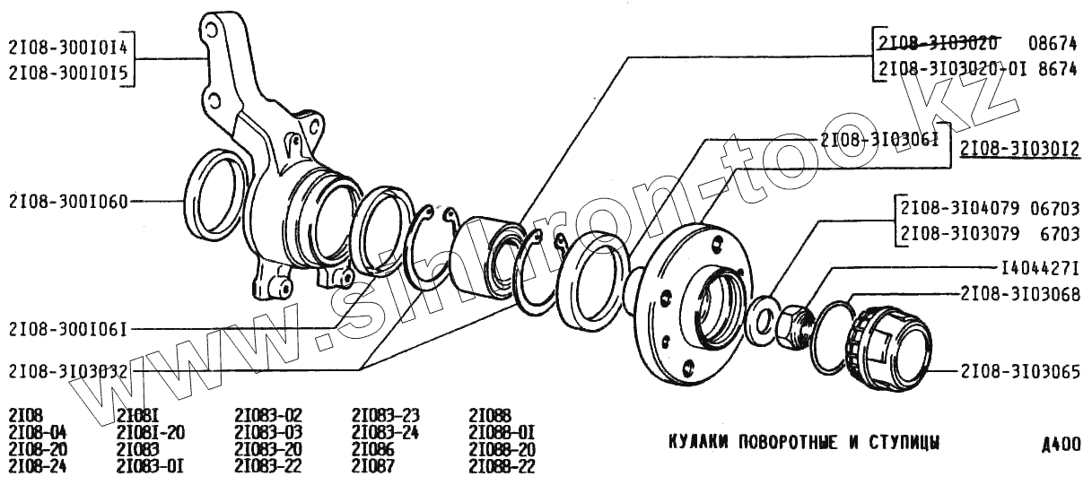 Каталог запасных частей к технике: ВАЗ-2108. Кулаки поворотные и ступицы