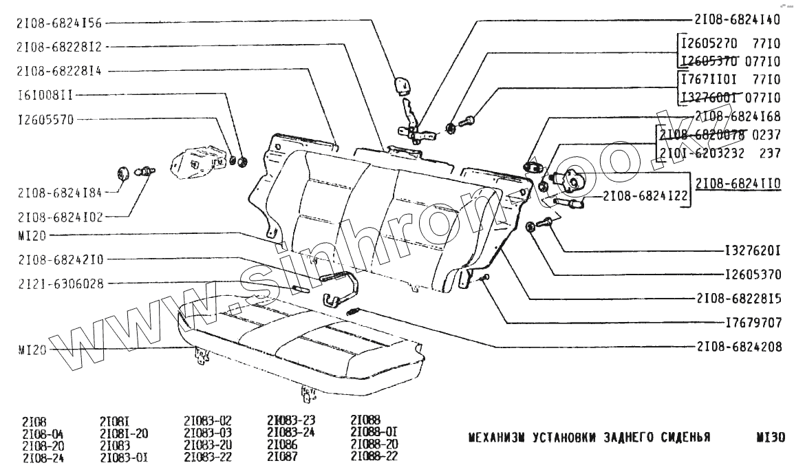 Каталог запасных частей к технике: ВАЗ-2108. Механизм установки заднего сиденья