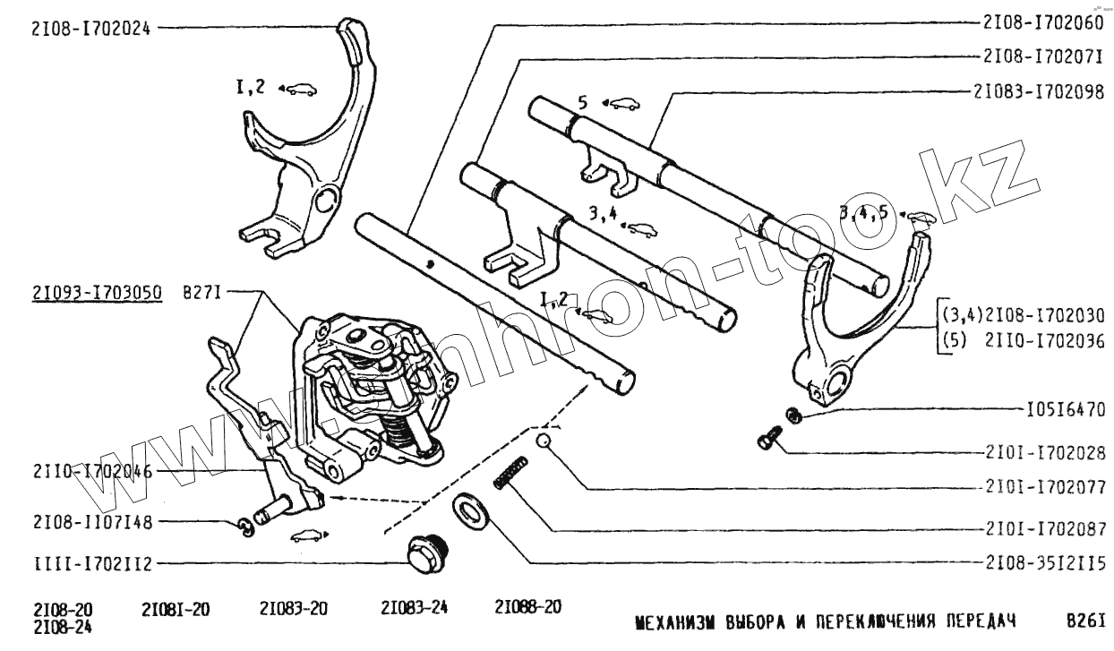 Каталог запасных частей к технике: ВАЗ-2108. Механизм выбора и переключения передач