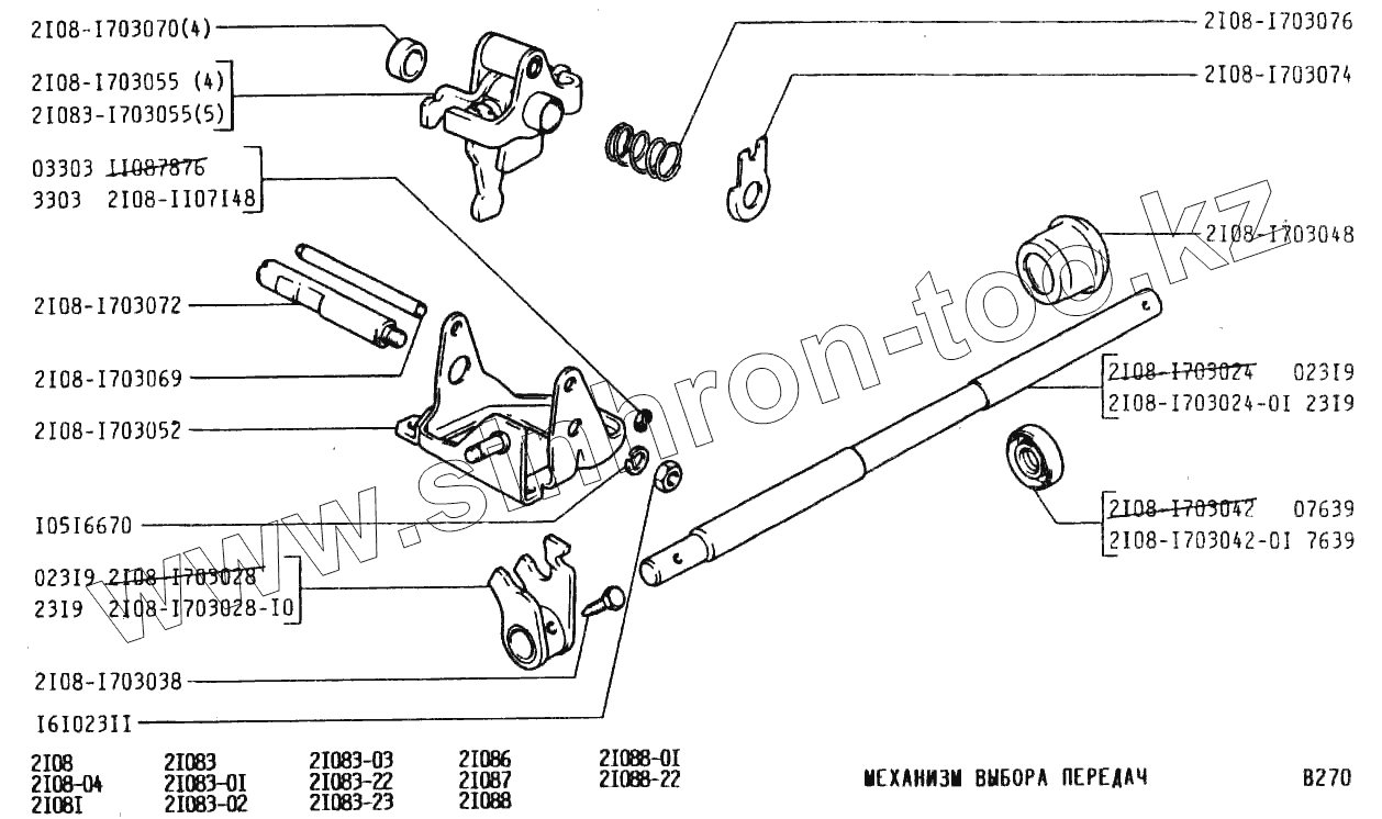 Каталог запасных частей к технике: ВАЗ-2108. Механизм выбора передач