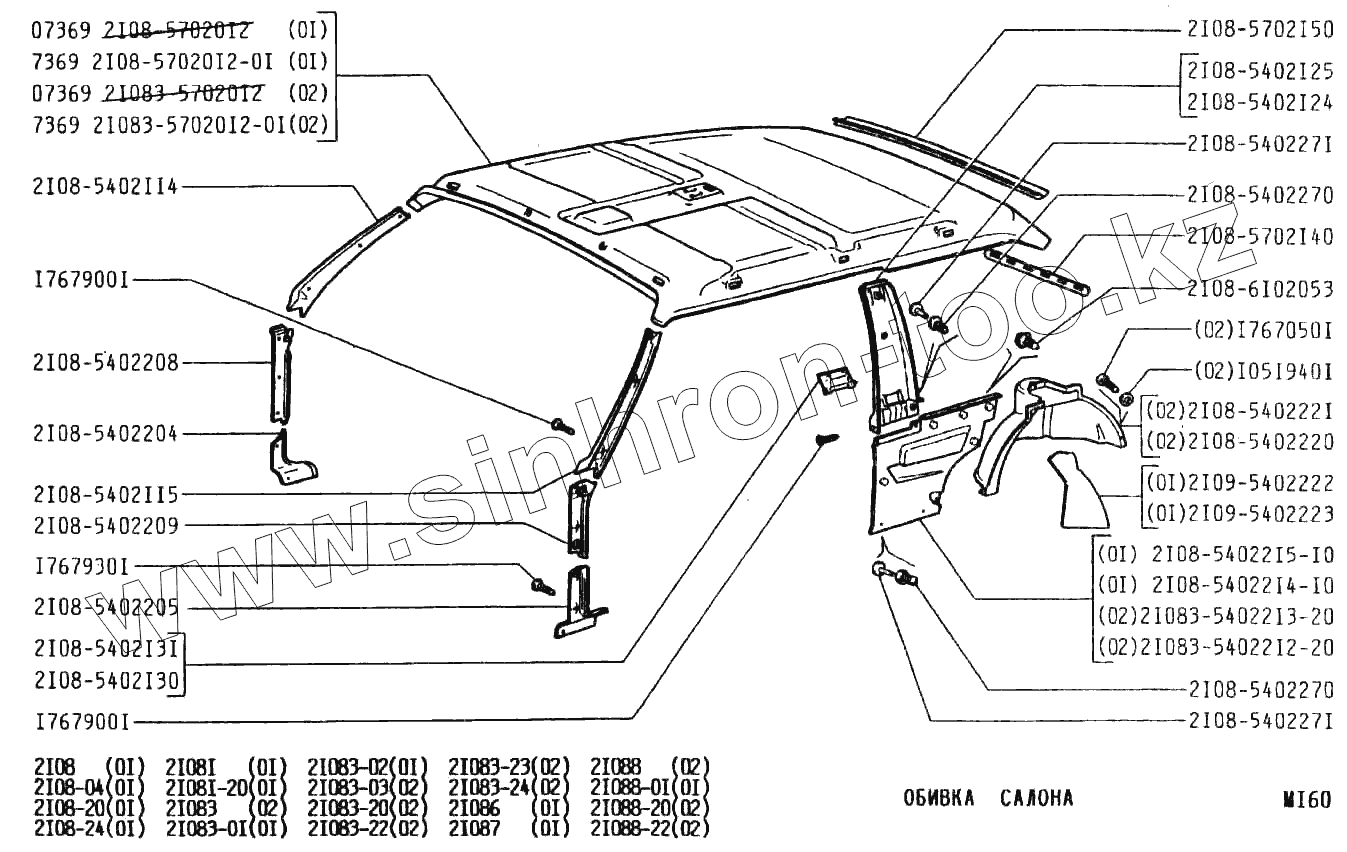 Каталог запасных частей к технике: ВАЗ-2108. Обивка салона