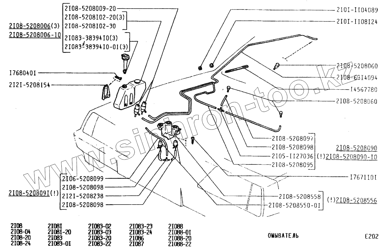 Каталог запасных частей к технике: ВАЗ-2108. Омыватель