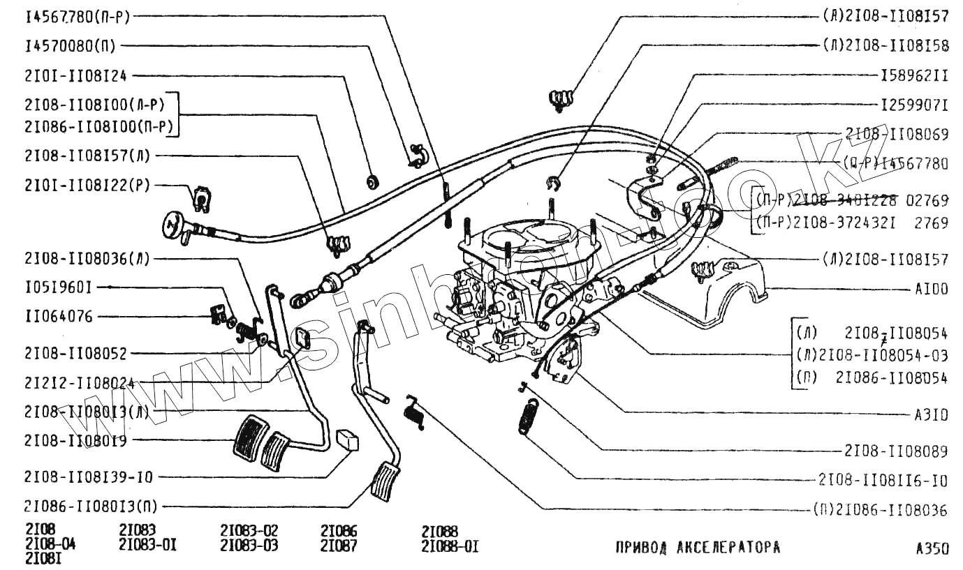Каталог запасных частей к технике: ВАЗ-2108. Привод акселератора