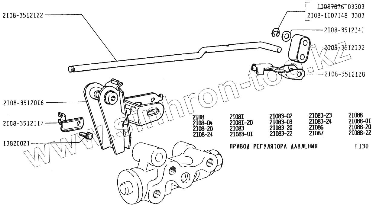 Каталог запасных частей к технике: ВАЗ-2108. Привод регулятора давления
