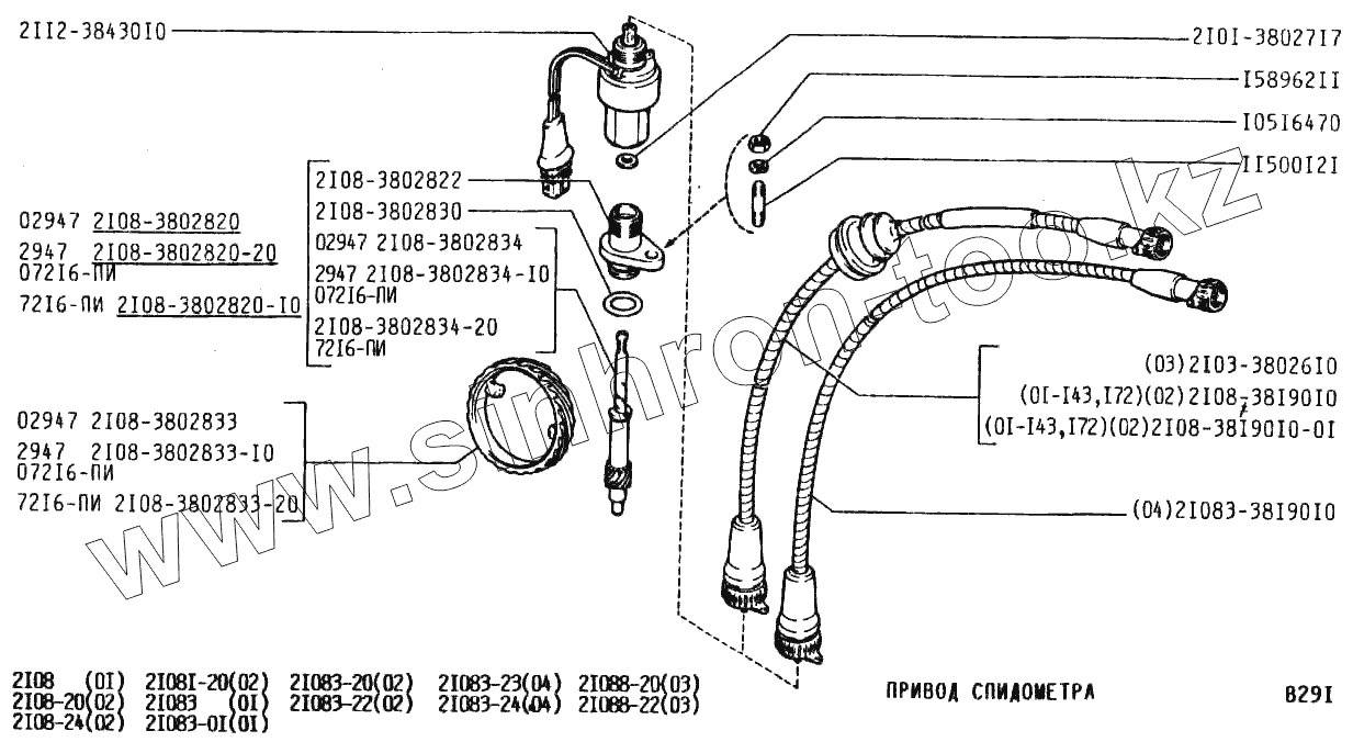 Каталог запасных частей к технике: ВАЗ-2108. Привод спидометра