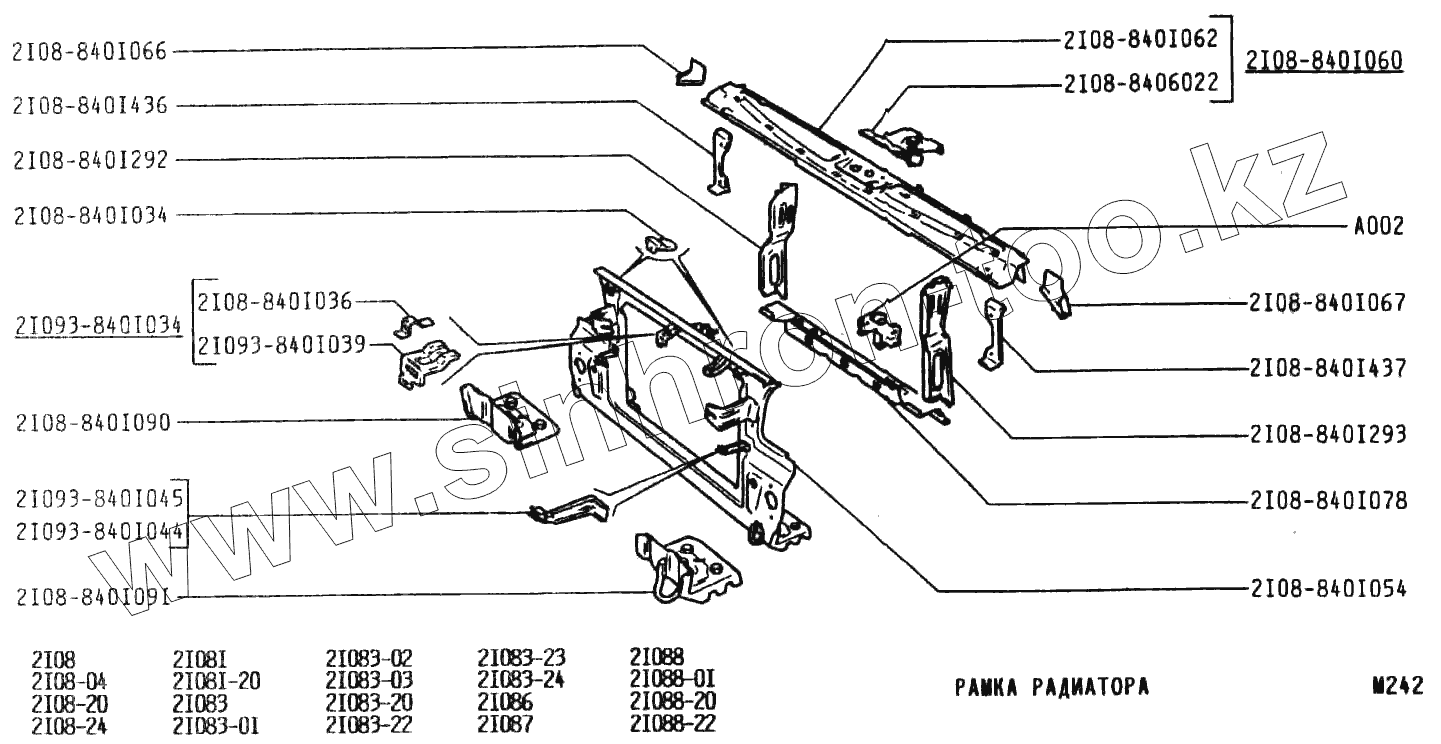 Каталог запасных частей к технике: ВАЗ-2108. Рамка радиатора