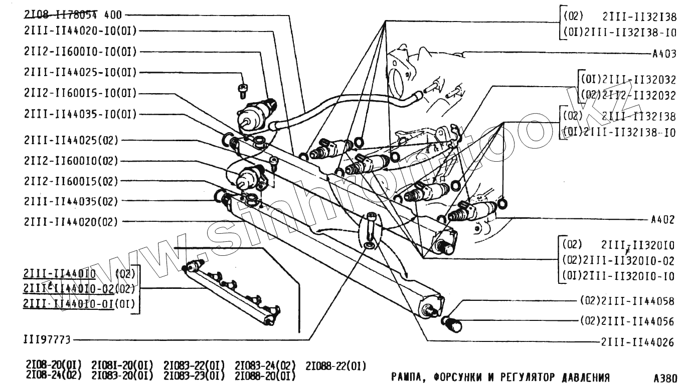 Каталог запасных частей к технике: ВАЗ-2108. Рампа, форсунки и регулятор давления