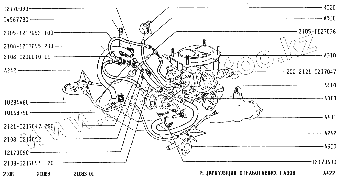 Каталог запасных частей к технике: ВАЗ-2108. Рециркуляция отработавших газов