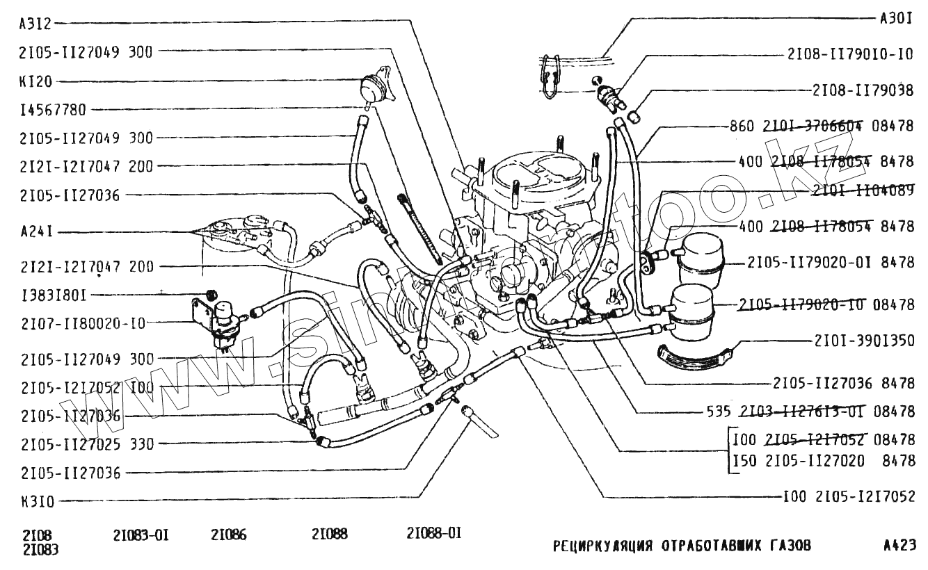 Каталог запасных частей к технике: ВАЗ-2108. Рециркуляция отработавших газов
