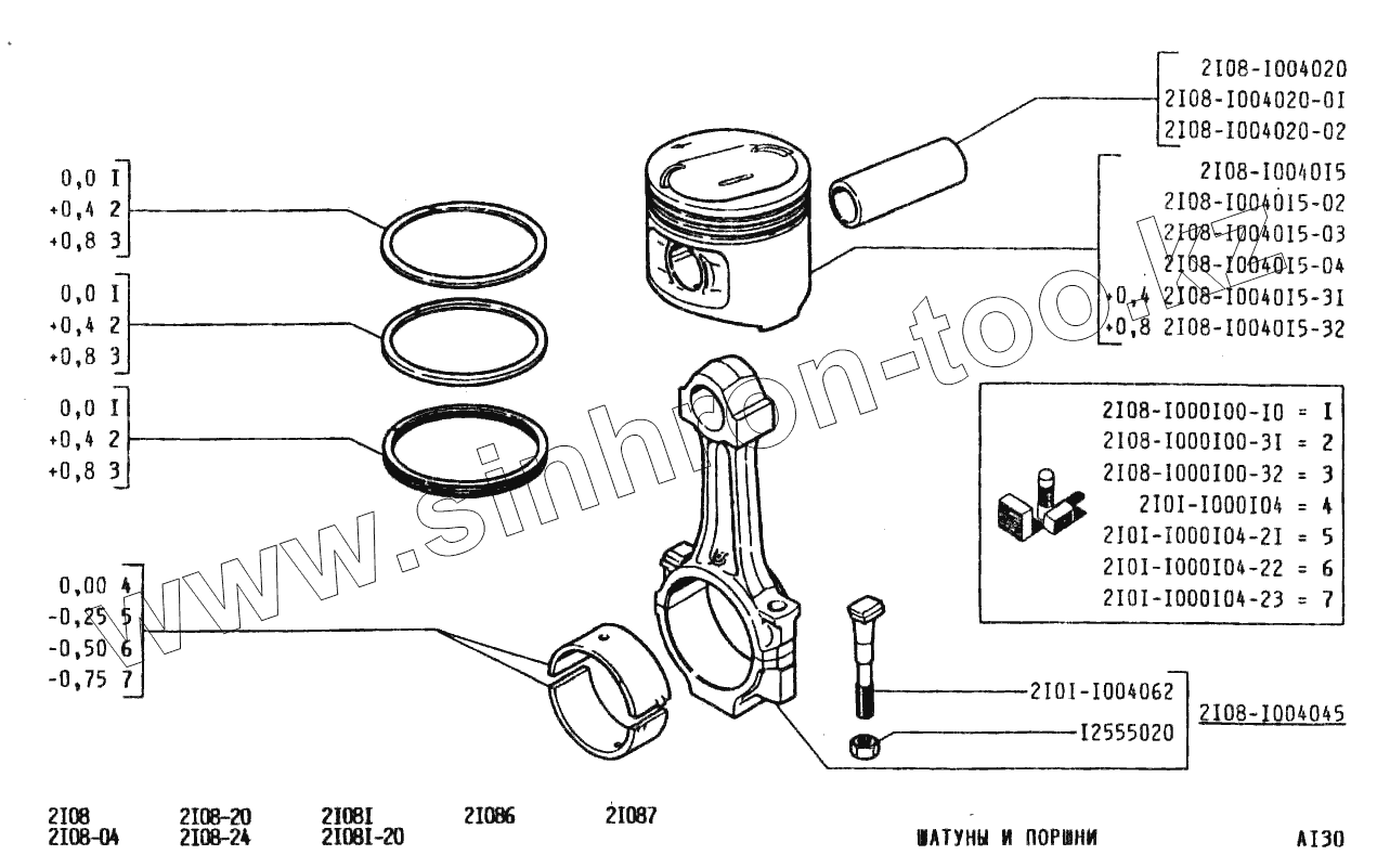 Каталог запасных частей к технике: ВАЗ-2108. Шатуны и поршни