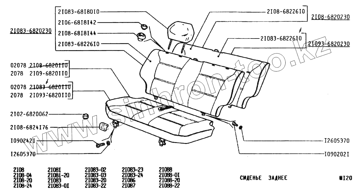 Каталог запасных частей к технике: ВАЗ-2108. Сиденье заднее