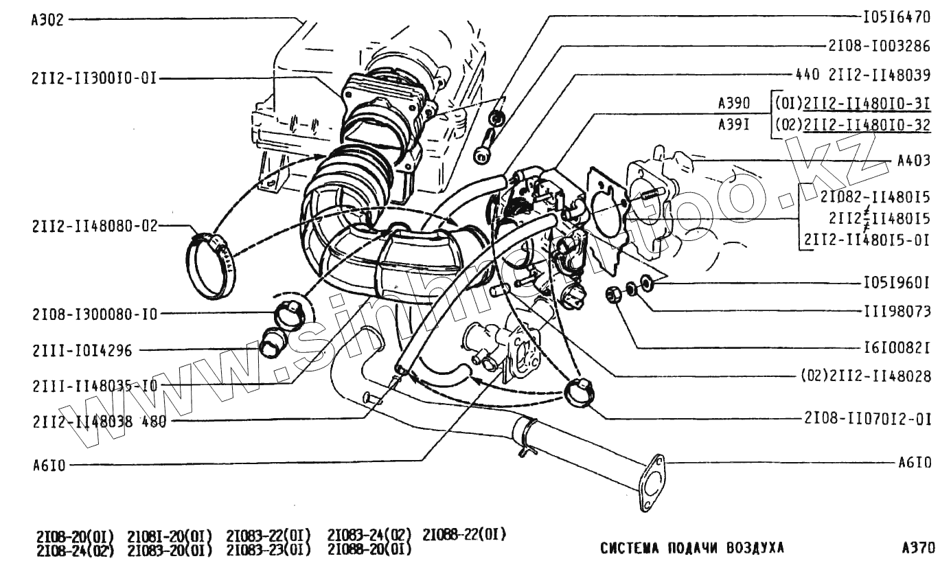 Каталог запасных частей к технике: ВАЗ-2108. Система подачи воздуха