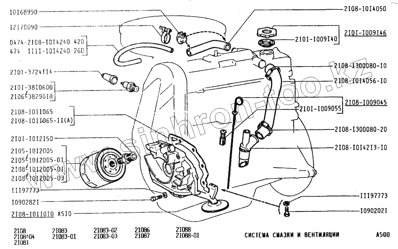 Каталог запасных частей к технике: ВАЗ-2108. Система смазки и вентиляция