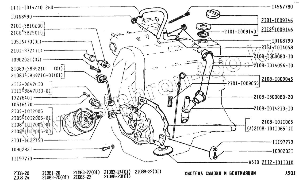 Каталог запасных частей к технике: ВАЗ-2108. Система смазки и вентиляция