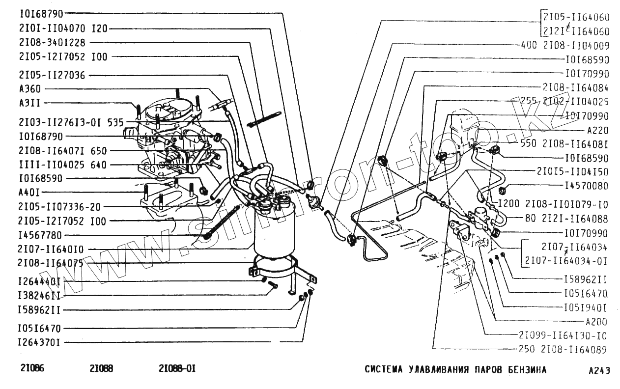 Каталог запасных частей к технике: ВАЗ-2108. Система улавливания паров бензина