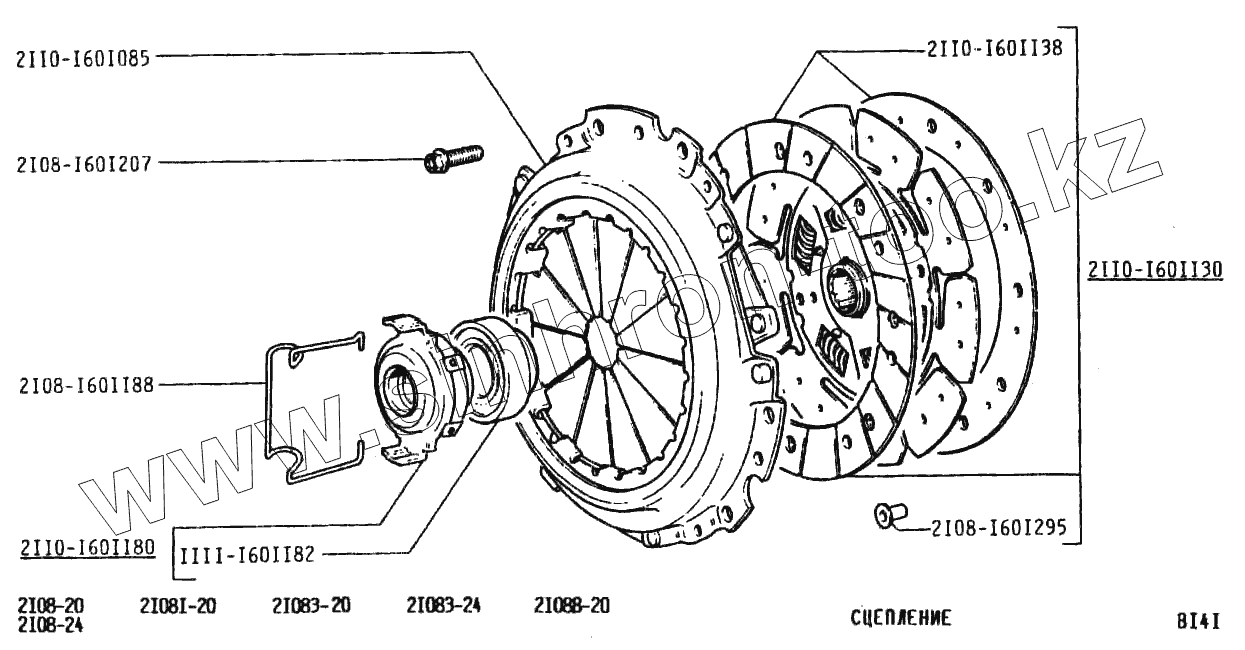 Каталог запасных частей к технике: ВАЗ-2108. Сцепление