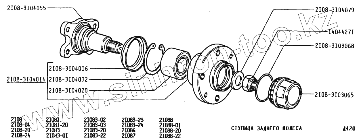 Каталог запасных частей к технике: ВАЗ-2108. Ступица заднего колеса