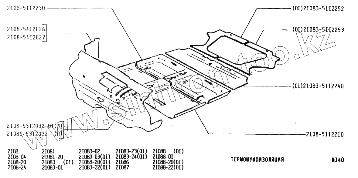 Каталог запасных частей к технике: ВАЗ-2108. Термошумоизоляция