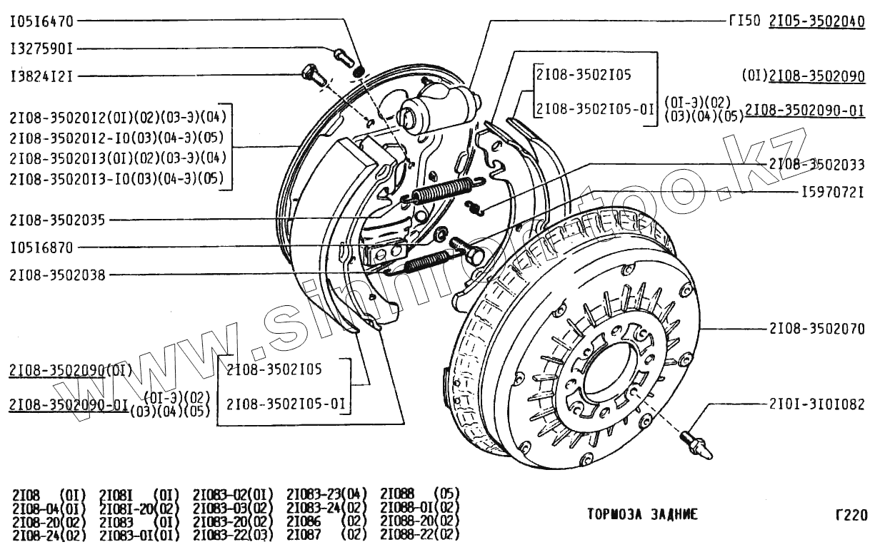 Каталог запасных частей к технике: ВАЗ-2108. Тормоза задние