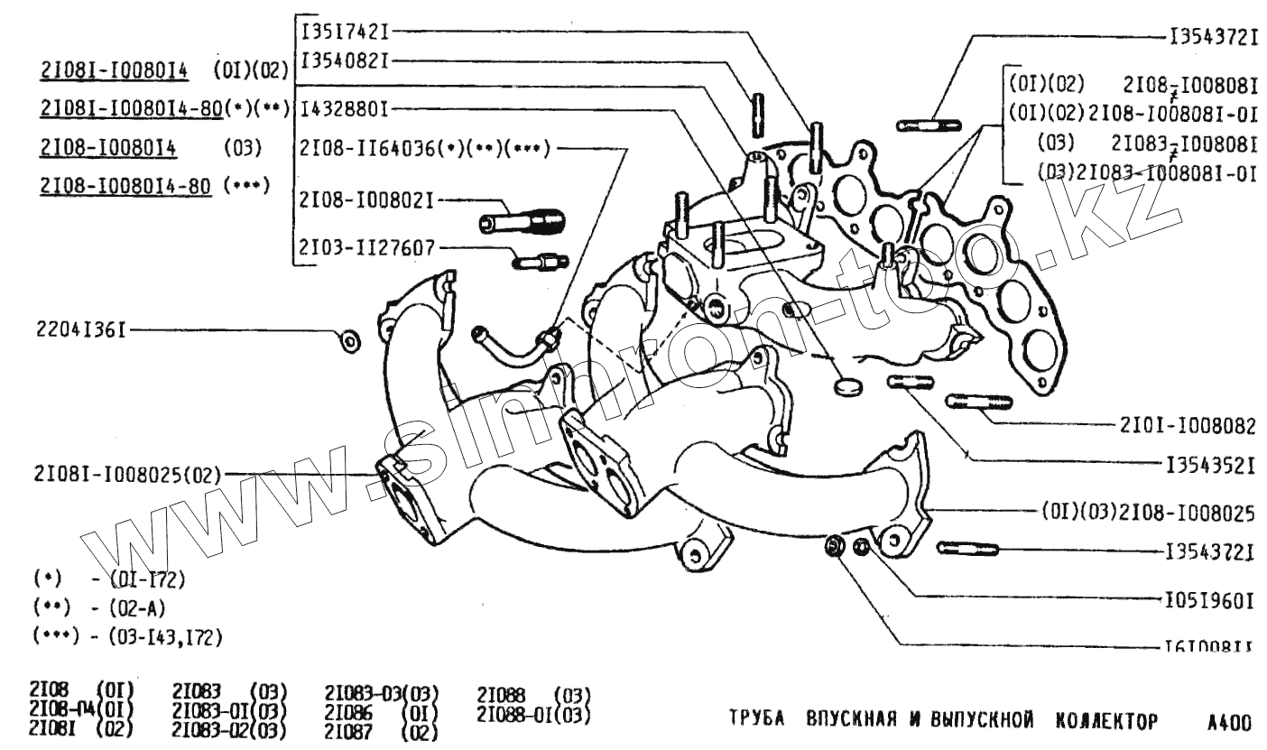 Каталог запасных частей к технике: ВАЗ-2108. Труба впускная и выпускной коллектор