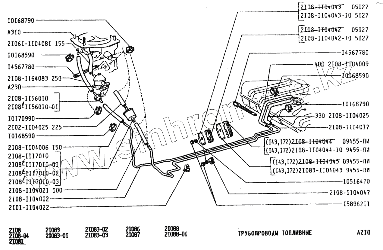 Каталог запасных частей к технике: ВАЗ-2108. Трубопроводы топливные