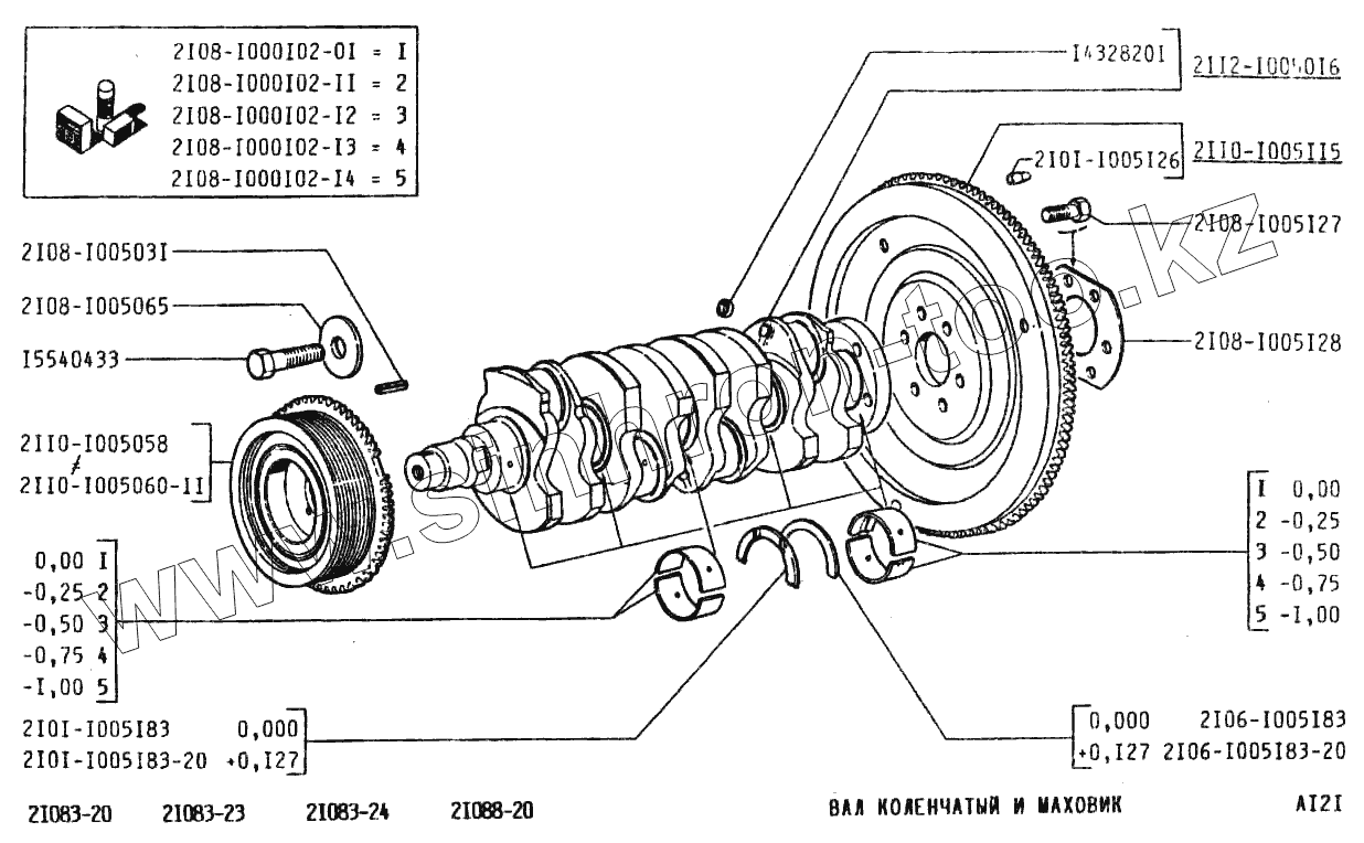 Каталог запасных частей к технике: ВАЗ-2108. Вал коленчатый и маховик