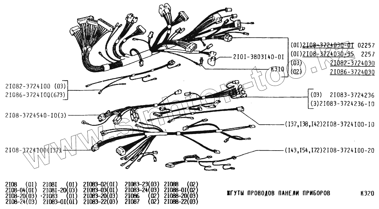 Каталог запасных частей к технике: ВАЗ-2108. Жгуты проводов панели приборов