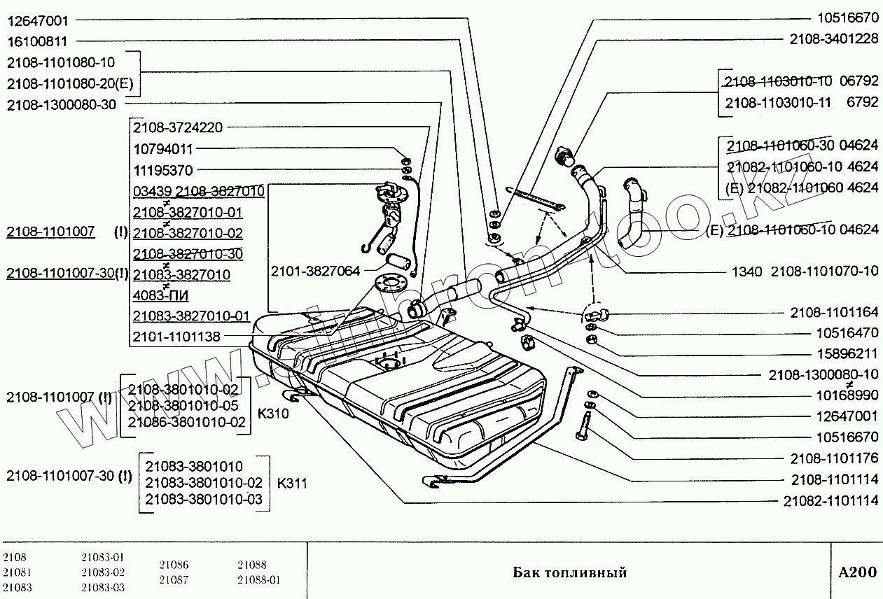 Каталог запасных частей к технике: ВАЗ-2108. Бак топливный
