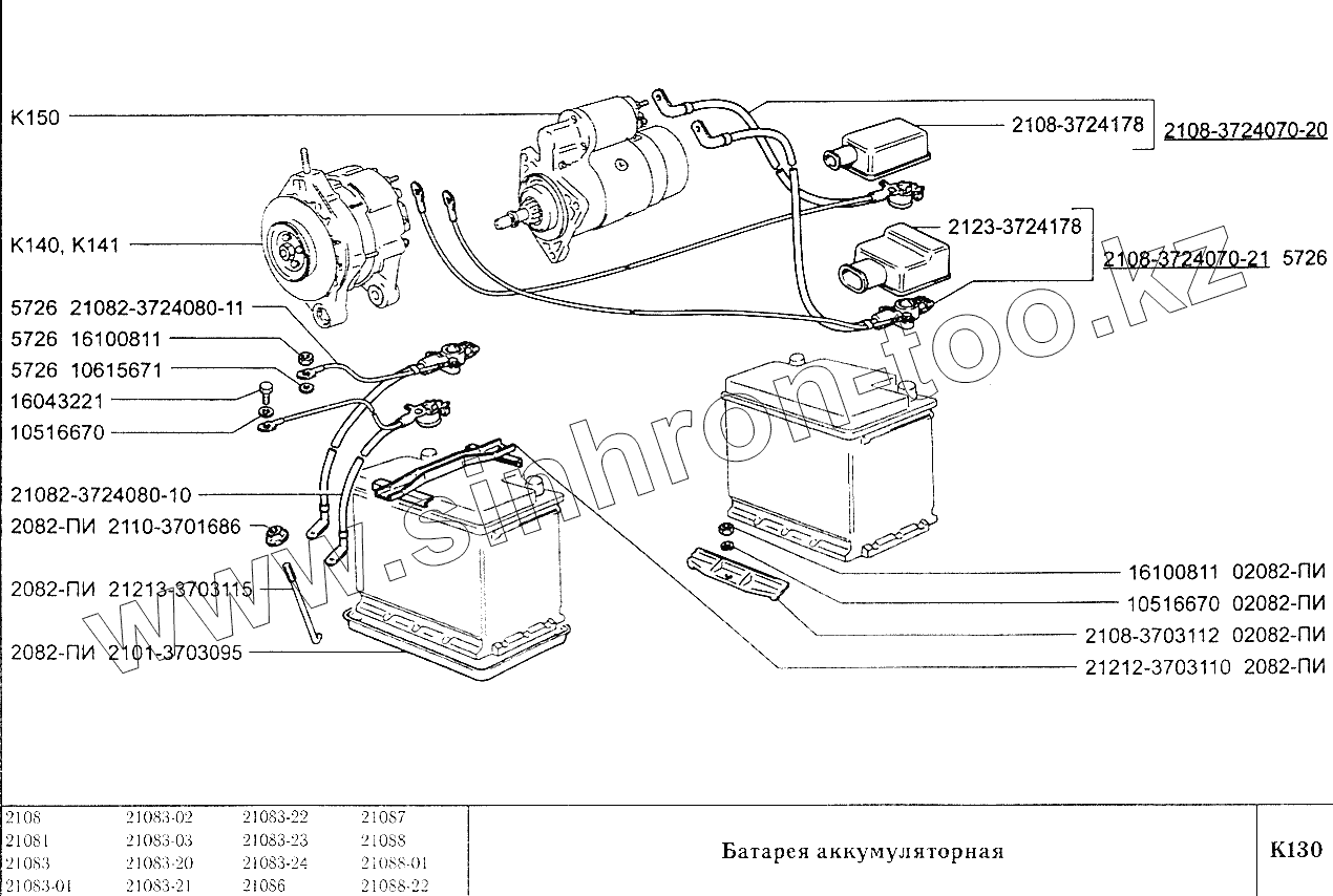 Каталог запасных частей к технике: ВАЗ-2108. Батарея аккумуляторная