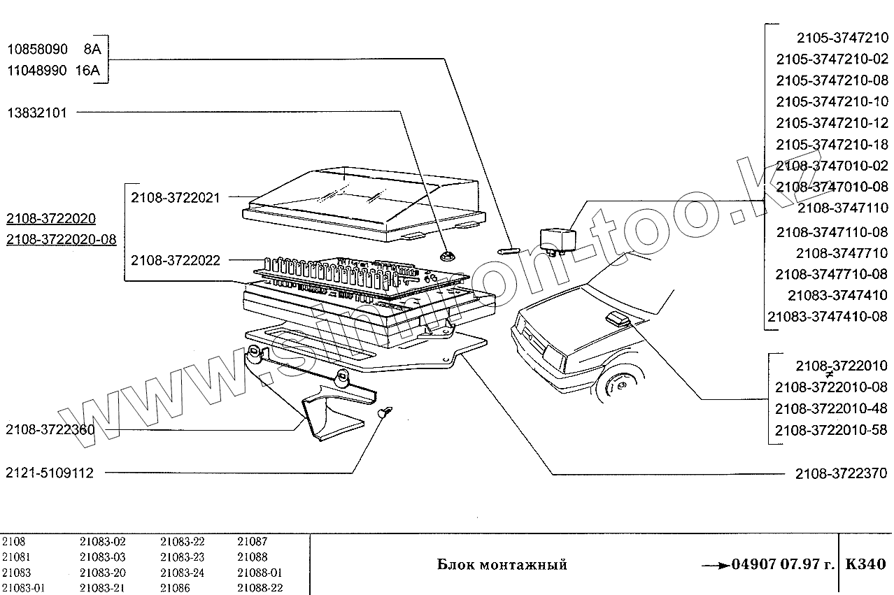 Каталог запасных частей к технике: ВАЗ-2108. Блок монтажный