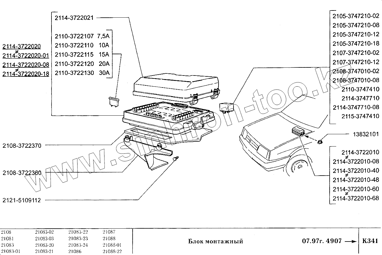 Каталог запасных частей к технике: ВАЗ-2108. Блок монтажный