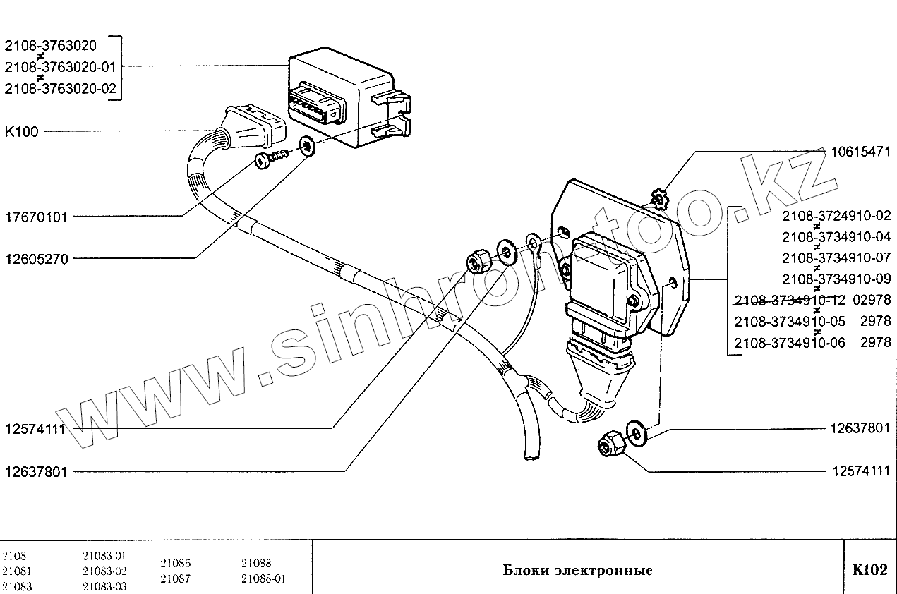 Каталог запасных частей к технике: ВАЗ-2108. Блоки электронные
