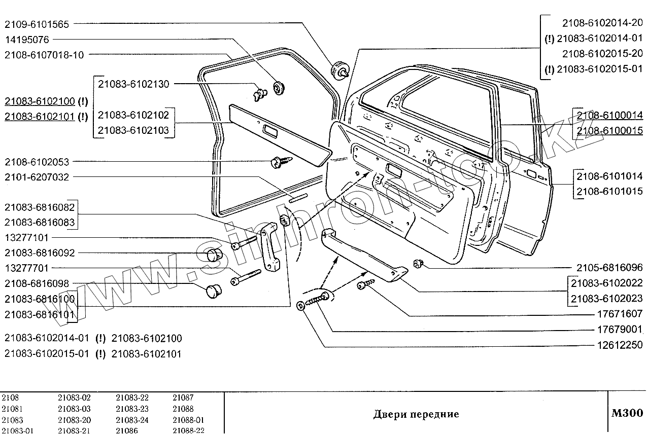Каталог запасных частей к технике: ВАЗ-2108. Двери передние